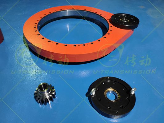 直齒驅(qū)動內(nèi)部的回轉(zhuǎn)支承和配套齒輪材質(zhì)選用優(yōu)質(zhì)42CrMo鍛件,經(jīng)過調(diào)制229-269HB(Q+T)處理,綜合機械性能大幅提高,保證客戶設(shè)備提供強有力支撐,保證設(shè)備良好運轉(zhuǎn)。齒均進(jìn)行感應(yīng)淬火,齒面硬度50HRC,齒內(nèi)部柔軟,齒表面淬火提高了單齒承載能力和齒的耐磨性能,心部柔軟確保了齒在沖擊載荷下的韌性,回轉(zhuǎn)支承和齒輪的齒堅固耐用耐沖擊是保證齒輪式回轉(zhuǎn)驅(qū)動運行可靠、長壽命的前提。