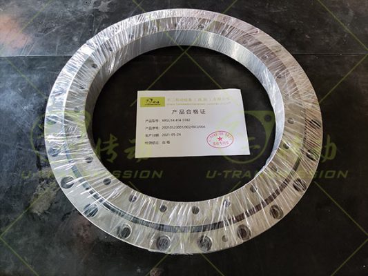 洛陽(yáng)不二傳動(dòng)給客戶提供的型號(hào)為XSU14.414的無(wú)齒式精密交叉滾子轉(zhuǎn)盤軸承,是用在自動(dòng)化設(shè)備上,回轉(zhuǎn)中心直徑414mm,端跳:0.04mm,徑跳:0.04mm,游隙:0-0.03mm。精密交叉滾子轉(zhuǎn)盤軸承精度高,載荷大,抗傾覆力矩好,旋轉(zhuǎn)靈活,轉(zhuǎn)速較高,抗震性能好,并且精度保持時(shí)間很久,這種精密的回轉(zhuǎn)支承是不二傳動(dòng)非常擅長(zhǎng)做的。