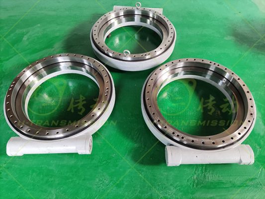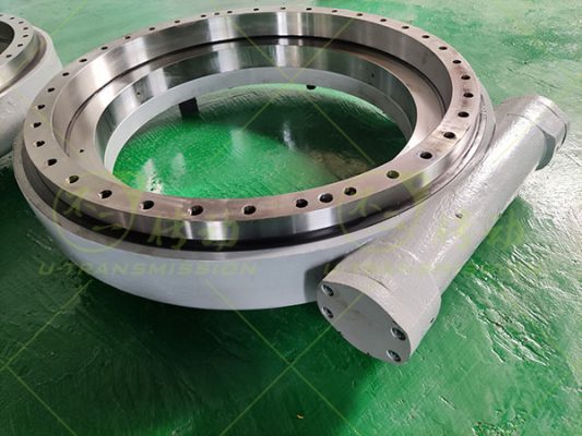 WEA35精密蝸輪蝸桿回轉驅動客戶用在重型設備上,要求回轉精度≤0.05°,客戶需要自鎖,減速比大,高輸出扭矩,所以給客戶設計了WEA35精密蝸輪蝸桿驅動,渦輪采用42CrMo調制,齒淬火,蝸桿采用鋼蝸桿,齒淬火,這樣設計能提高單齒承載,最大限度提高驅動的輸出扭矩。客戶要求反向自鎖,只能由蝸桿帶動蝸輪,而不能由蝸輪帶動蝸桿,這樣在設備關機或者無動力的情況下仍能保證設備靜止不動,非常安全可靠。蝸桿傳動相當于螺旋傳動,多齒同時嚙合,傳動平穩、噪音很小。