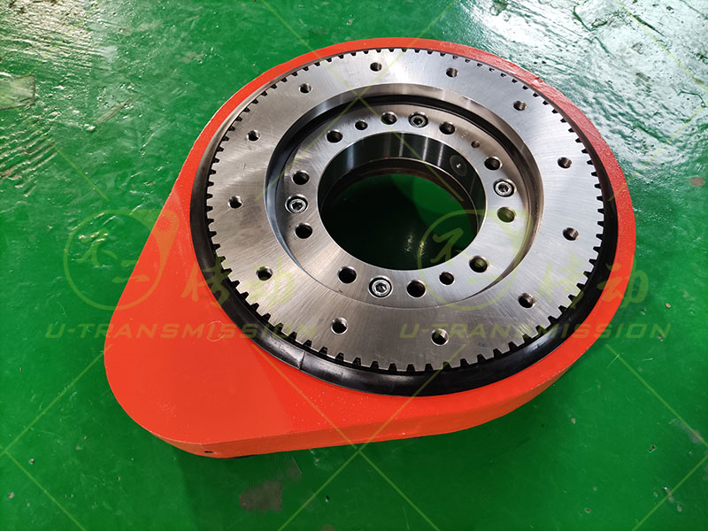 SP-I-0260外齒精密齒輪式回轉驅動應用在工業自動化設備上,客戶安裝行星減速機和私服電機分度使用,需要精密型的回轉驅動,需要齒間隙≤0.1mm,根據客戶需要,我們給客戶設計了精密的SP-I-0260外齒回轉驅動,回轉支承依舊采用小游隙,高旋轉精度,確保磨齒后回轉支承能達到非常小的齒跳,配合磨齒小齒輪,經驗豐富技術嫻熟的師傅進行裝配調試,這樣的組合必然能做出理想的產品。