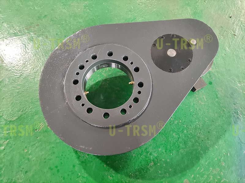 2-S-I-O-0229 雙極齒輪式回轉驅動,應用在特種車輛上,客戶要求驅動載荷3噸,扭矩2068Nm,液壓馬達與回轉中心要有一定的距離。