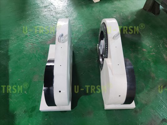 根據客戶的這些要求,不二傳動的工程師設計了這一款帶底座豎直安裝使用的齒輪式回轉驅動,滿足了客戶的使用要求。兩個齒輪式回轉驅動電機安裝方向相反,一個同向安裝,一個反向安裝,同向安裝的回轉驅動密封的設計是難點,在不增加成本的前提下,不二傳動為客戶設計了特殊的密封方式,用最低的成本巧妙解決了密封問題。
