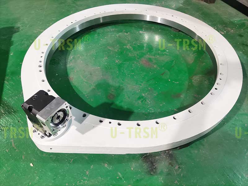 其實在設備設計中有很多類似的需求,被轉工件重量很輕,但是尺寸比較大,客戶還要從回轉驅動的內徑穿過尺寸較大的部件。這就要求齒輪式回轉驅動做成輕薄型的,首先要考慮回轉驅動的強度,不能設計滿足不了客戶載荷要求的過于輕薄的回轉驅動。