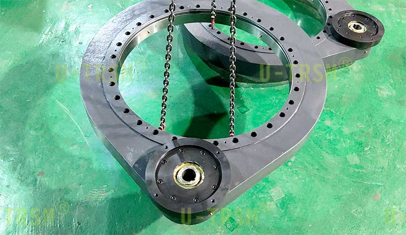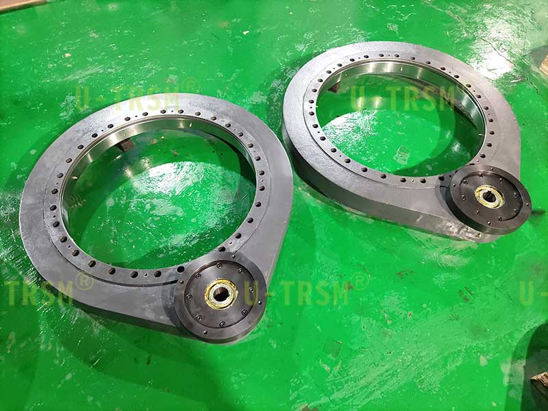 S-III-O-0955 齒輪式回轉驅動應用在重型設備上,用來帶動工件低速旋轉,使工件到達指定的位置。設備要求回轉驅動載重大,傾覆力矩大,輸出扭矩大。