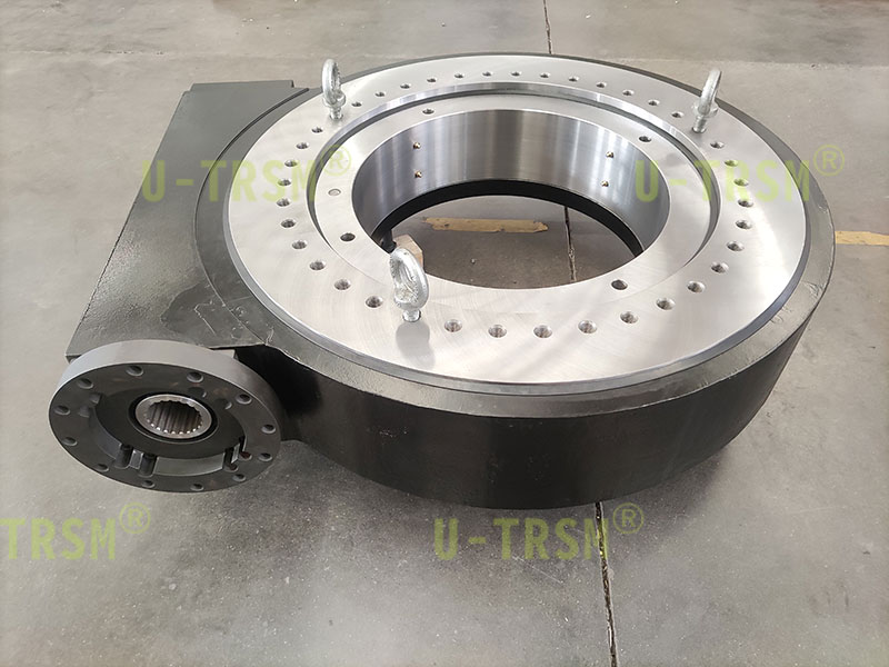 不二傳動工程師應對此種工況,為客戶設計選型WZ-Ⅲ-O-2-0620雙排球大模數重載型蝸輪蝸桿回轉驅動,并對齒面進行淬火處理,提高了齒的性能以達到客戶的使用要求。不二傳動設計的WZ-Ⅲ重載型蝸輪蝸桿式回轉驅動作為轉向裝置,能實現很高的輸出扭矩,具備承受很大傾覆力矩的能力,并具有非常緊湊的設計結構,全防護的設計能達到IP65的防護等級。