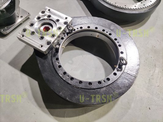 S-Ⅰ-O-0311輕型直齒回轉驅動,應用在特種自動化設備上,客戶對于旋轉精度、回轉驅動的穩定性有很高的要求,在安裝的法蘭接口上面,客戶適配的異形的減速機。不二傳動工程師根據客戶的工況,設計了S-Ⅰ-O-0311輕型直齒式回轉驅動,其中回轉支承按照0游隙設計,端面跳動≤0.03,齒面淬火,磨齒處理,齒精度達到6級,大大減小了回轉驅動的回程間隙,使客戶的分度更準確,0游隙的設計及磨齒的加工保證了客戶使用的穩定性,并提高了回轉驅動的整體使用壽命。