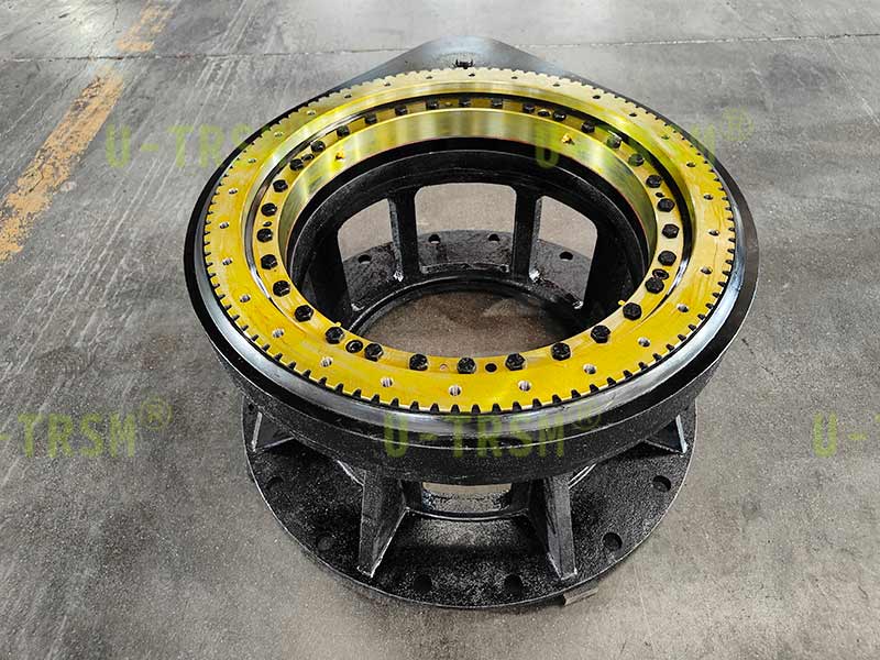 S-II-O-0541齒輪式集成底座一體化回轉驅動應用在特種自動化設備上。客戶對于產品的成本有精確的控制,并對回轉驅動有更高的精度要求。經過不二傳動設計工程師與客戶的不斷的溝通和改進,最終把底座與旋轉平臺集中到回轉驅動本身。這樣極大的減少了制造成本,省去了中間的轉接法蘭,使得回轉驅動與底座與旋轉平臺一體化,減少了客戶的安裝時間,提高了效率,并且各個部件配合加工,在加工過程中,更好的保持了精度,一致性更好。