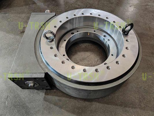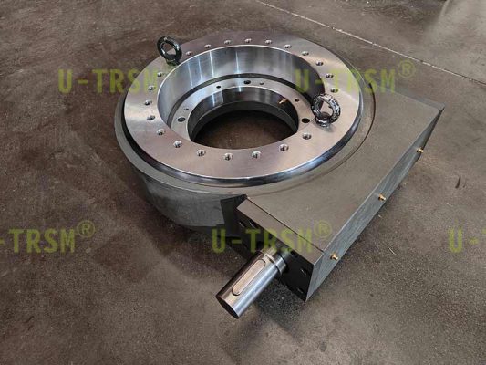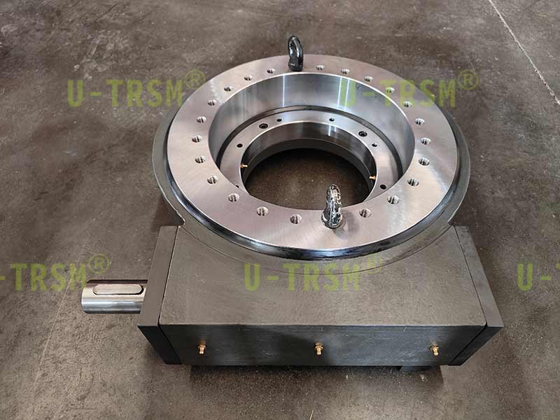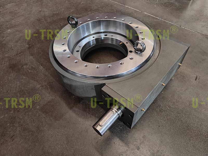 不二傳動設備(洛陽)有限公司給客戶設計了一款大扭矩、高精度蝸輪蝸桿回轉驅動,應用于大型自動化包裝機械上,載荷較大,并且要求運轉平穩,回程準確。不二傳動設計工程師根據客戶提供的工況,設計了此款回轉驅動,用大模數保證扭矩的輸出,其中回轉支承采用磨加工處理,保證溝道耐磨性及端面跳動,負游隙的設計使得回轉平穩,蝸桿采用特殊材料,蝸桿齒面淬火及磨齒處理,提高齒面的耐磨性及嚙合的精度。