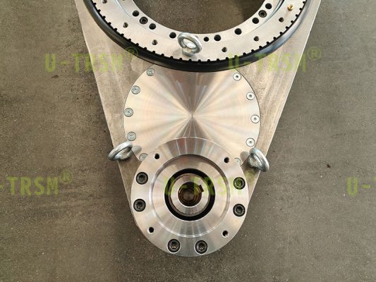 此款回轉驅動用在高溫環境中,客戶對環境溫度有著很高的敏感度,不二傳動經過不斷的努力與客戶的反復溝通,研發了這款能在200℃左右環境溫度中運行的回轉驅動。配合一系列的耐高溫設計,使用耐高溫油脂,耐高溫密封、隔離塊等有效手段,并且在外殼進行特殊設計,使得熱量能盡快的傳遞到外部,保證回轉驅動的順暢運行。輸入輸出同側設計搭配兩級傳動,極大的節省了安裝空間,便于客戶整機的布局及安裝。
