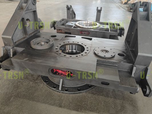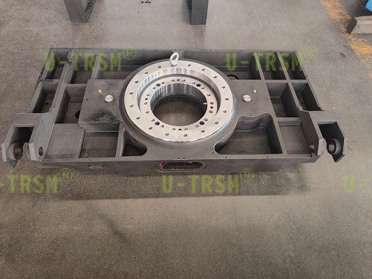 此款回轉(zhuǎn)驅(qū)動應用在自動化旋轉(zhuǎn)平臺設備中,兩側(cè)支臂孔與平臺孔成角度,用于連接舉升設備使用,此驅(qū)動與平臺集成一體化設計,節(jié)省設備安裝空間,避免過多的安裝配合造成的誤差累計增加。