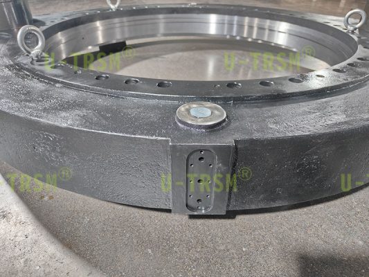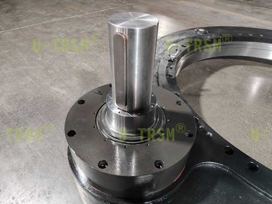 首先,回轉驅動系統作為一種高效的機械運動傳遞方式,廣泛應用于工業生產線、建筑工地、交通設備等領域。該系統的設計充分考慮了載荷和扭矩的峰值要求,最大載荷可達6500KN,而扭矩則達到了1700KNm,進一步體現了其在高精度場合下的穩定性。