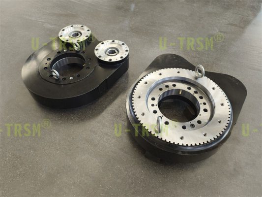 不二傳動設計工程師根據客戶需求,研發了此款驅動:外殼及適配法蘭采用鋁合金設計,回轉支承做薄,重量由標準型號的50kg,下降到37kg以內,并且保證載荷及輸出扭矩等性能不變。